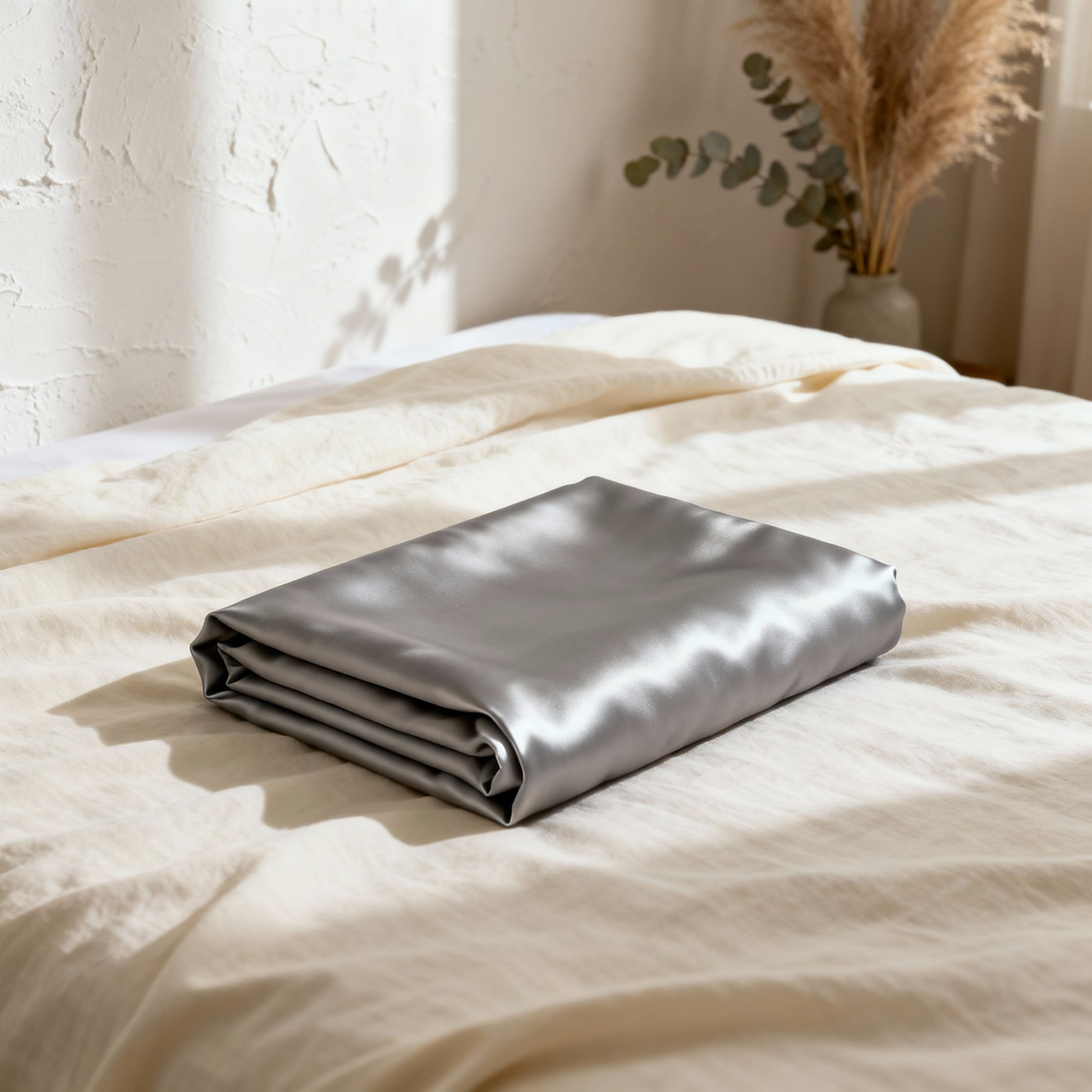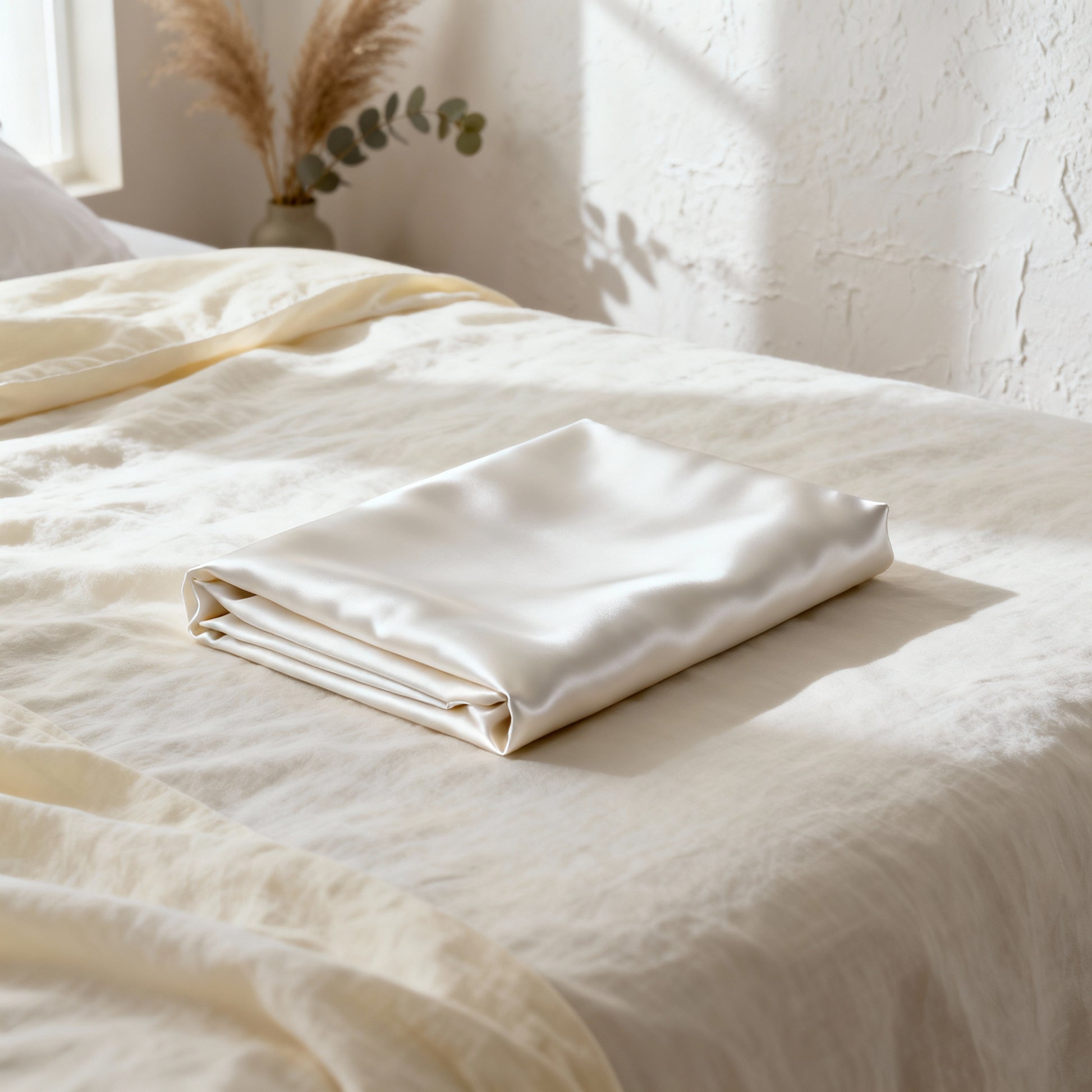 Le rituel nocturne optimal : l'oreiller SILK qui réduit la compression, la taie soie qui élimine la friction, et le masque soie qui crée l'obscurité totale.